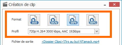 Format et Profil sont présélectionnés depuis la dernière création de clip.
