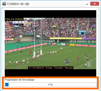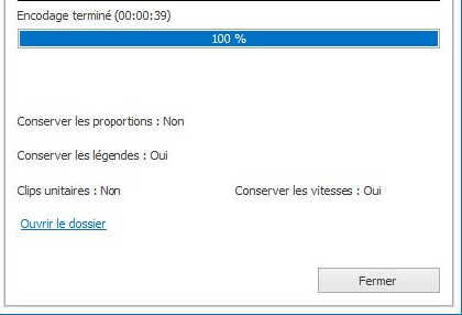 L'encodage démarre automatiquement, vous pouvez suivre sa progression.