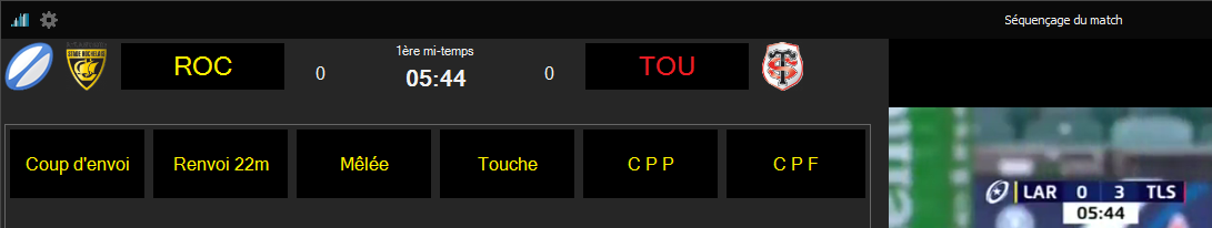 oCréez la Fiche Match, démarrez la saisie, séquencez la première séquence de jeu, puis déplacer vous jusqu'à la mi-temps. Terminez la 1ère période.