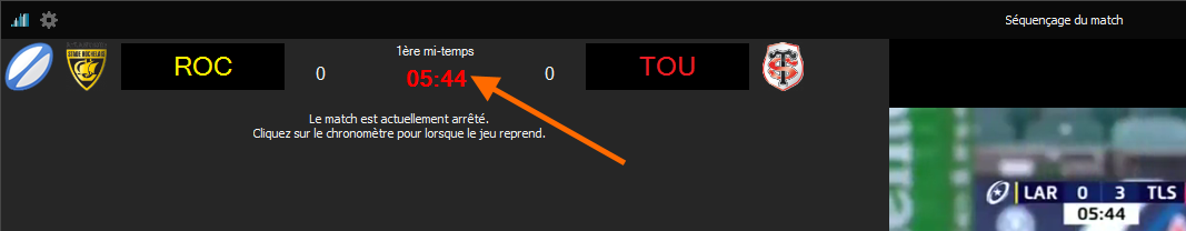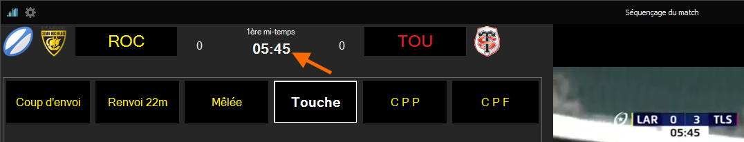 2.Positionnez vous au timecode correspondant à l'arrêt du temps. S'il s'agit d'un match télévisé avec le chronomètre officiel affiché à l'écran, déplacez vous de 5" ou de 10" jusqu'au premier décalage.