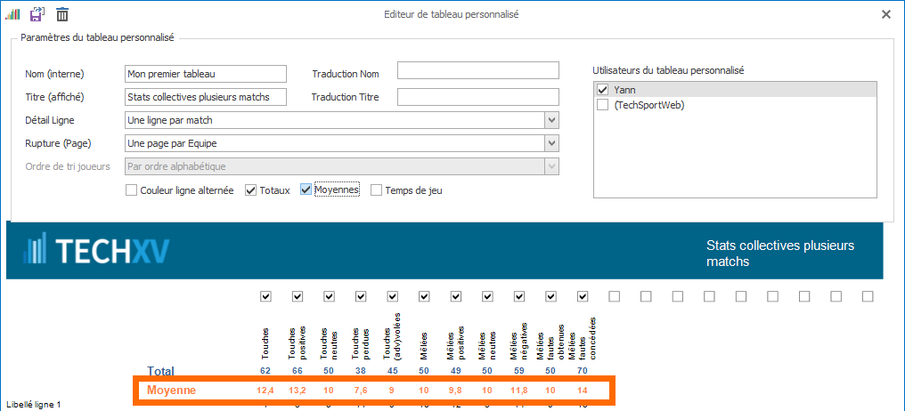 Cochez les Utilisateurs du Tableau personnalisé qui auront accès au Tableau personnalisé dans Statistiques.