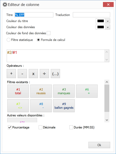 3.Tapez directement la formule de calcul dans la zone de texte en utilisant la syntaxe exacte. Le numéro de la colonne doit être précédé par le symbole #.
