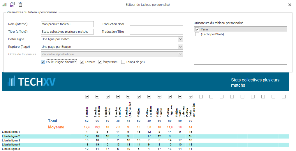 Moyenne - Cochez pour afficher une ligne supplémentaire qui montre la moyenne de chaque colonne. Sinon laissez vide.