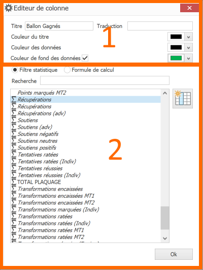 Filtres existants - Sélectionnez les filtres disponible pour additionner, calculer un pourcentage ou un ratio.