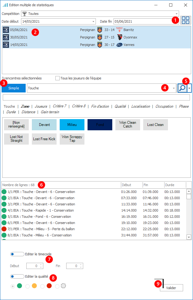 Voir étape par étape comment éditer des statistiques de plusieurs matchs par lot.